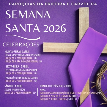 Contamos com todos na Via-Sacra da Catequese, no sábado 14 de março. O ponto de encontro é na igreja de S. Pedro às 16h30, para catequistas,...
