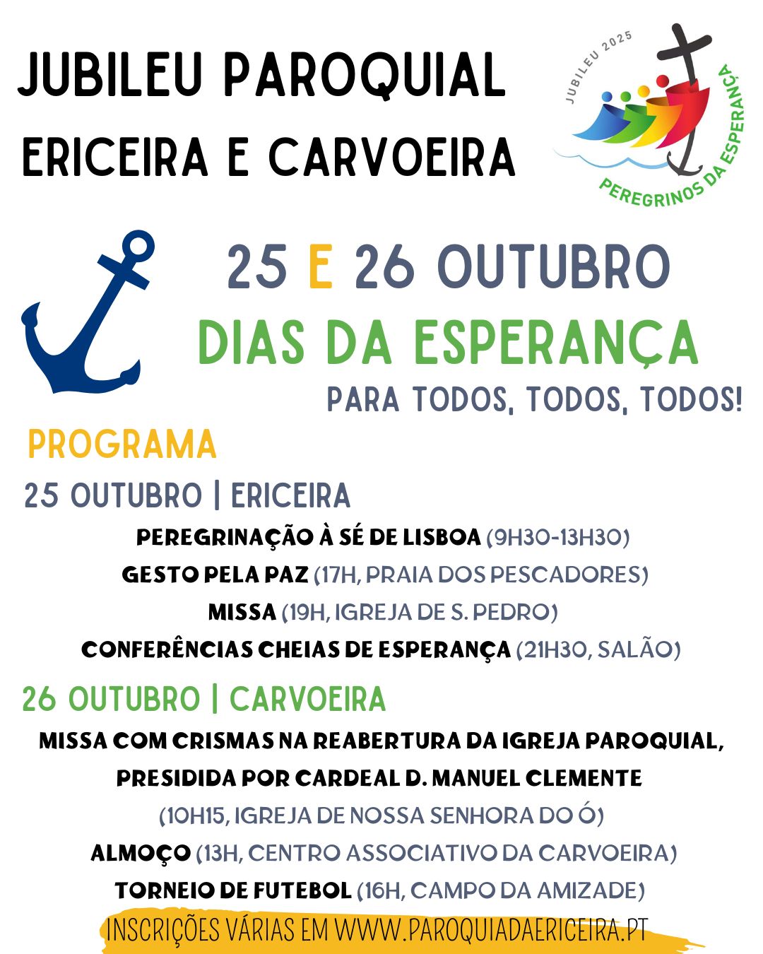 DIAS DA ESPERANÇA – JUBILEU PAROQUIAL ERICEIRA E CARVOEIRA – 25 E 26 OUTUBRO 2025