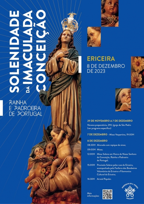 O programa da Solenidade da Imaculada Conceição, Rainha e Padroeira de Portugal de 2023 encontra-se no cartaz principal.