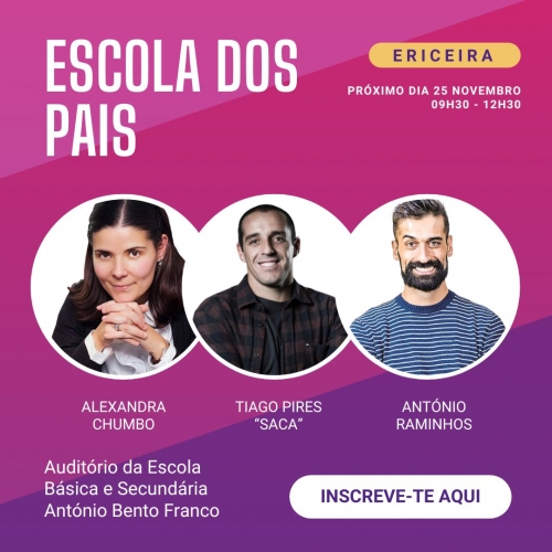 A Escola dos Pais está de volta já no sábado, 25 novembro, entre as 9h30 e as 12h30, no Auditório da Escola Básica...