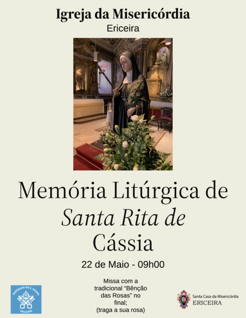 Na próxima segunda-feira, dia 22 de maio, celebra-se a Memória Litúrgica de Santa Rita de Cássia, na Missa das 9h na igreja...