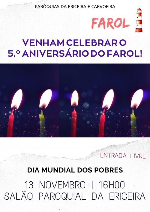É já no domingo, a 13 de novembro, no Dia Mundial dos Pobres, que o FAROL celebra o seu 5.º aniversário! A Festa é...