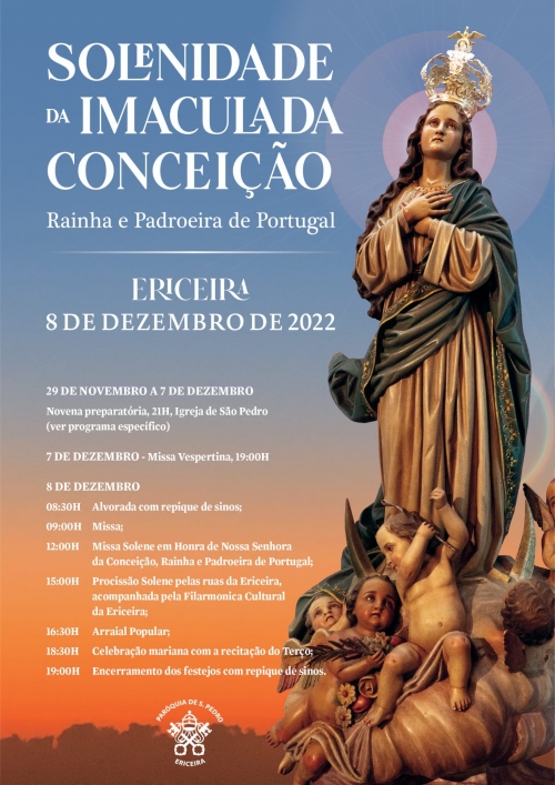 O programa principal de 2022 da Solenidade da Imaculada Conceição, Rainha e Padroeira de Portugal.