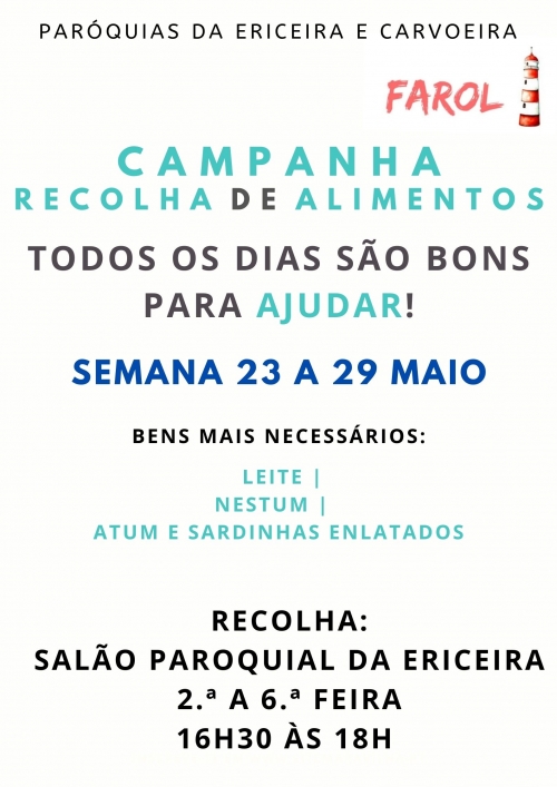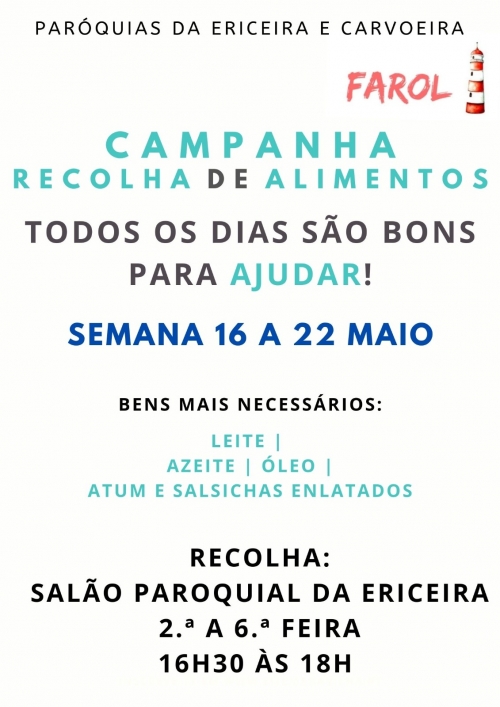 O FAROL está a precisar dos seguintes bens para continuar a ajudar na semana de 16 a 22 de maio: