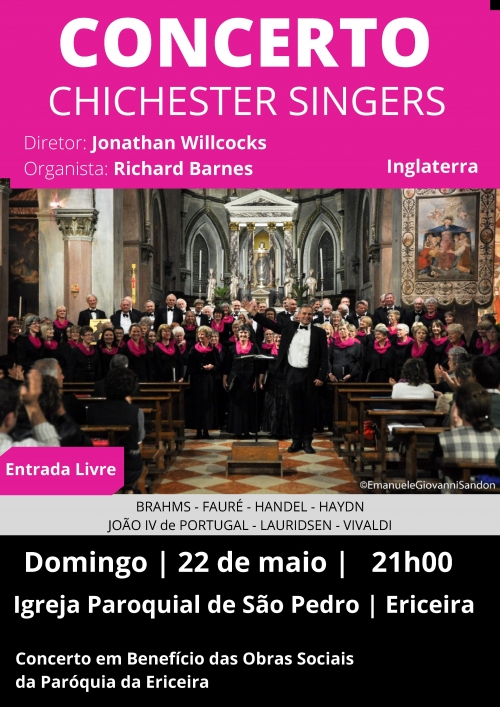Este domingo, 22 de maio, às 21h há um grande Concerto na igreja de S. Pedro, na Ericeira, com entrada gratuita.
