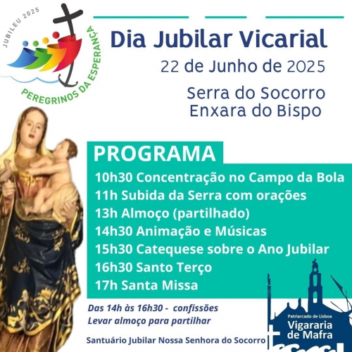 Para o Dia Jubilar Vicarial a 22 de junho na Serra do Socorro, na Enxara do Bispo, aceitam-se inscrições via formulário ou presenciais...