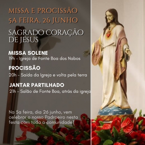 Na quinta-feira, dia 26 de junho, Fonte Boa dos Nabos vai celebrar o dia do seu padroeiro: o Sagrado Coração de Jesus.