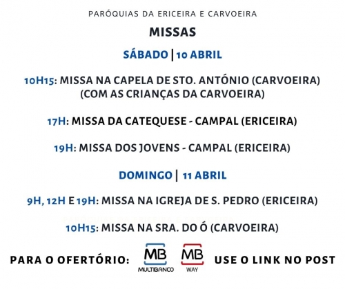 MISSAS | 10 E 11 ABRIL