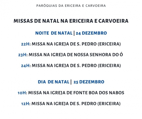 MISSAS DE NATAL NA ERICEIRA E CARVOEIRA