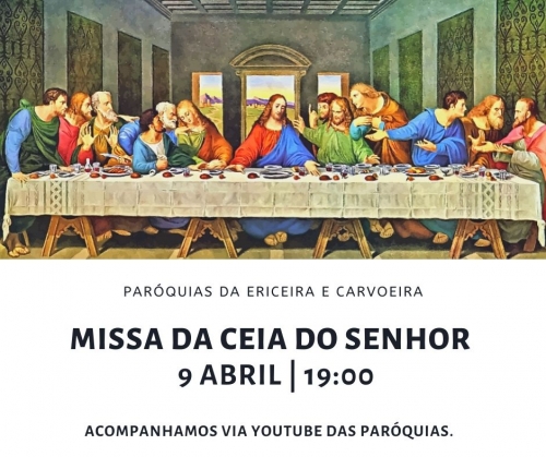 Hoje, quinta-feira, às 19h há Missa da Ceia do Senhor, transmitida no canal de YouTube das Paróquias!