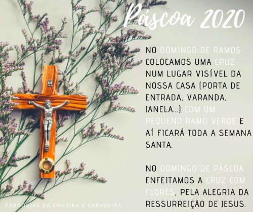 Agora colocamos uma cruz num lugar visível da casa (porta de entrada, varanda, janela...) com um pequeno ramo de flores no Domingo de Páscoa!...