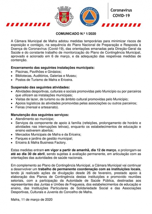 A Câmara Municipal de Mafra adotou medidas temporárias para minimizar riscos de exposição e contágio,...