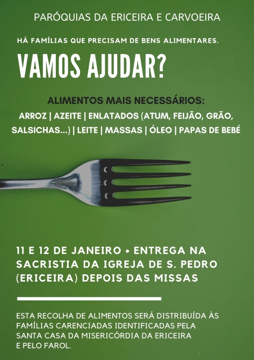 No passado fim de semana, de 11 e 12 de janeiro, realizou-se a terceira recolha de alimentos na Paróquia de São Pedro da Ericeira. A próxima...