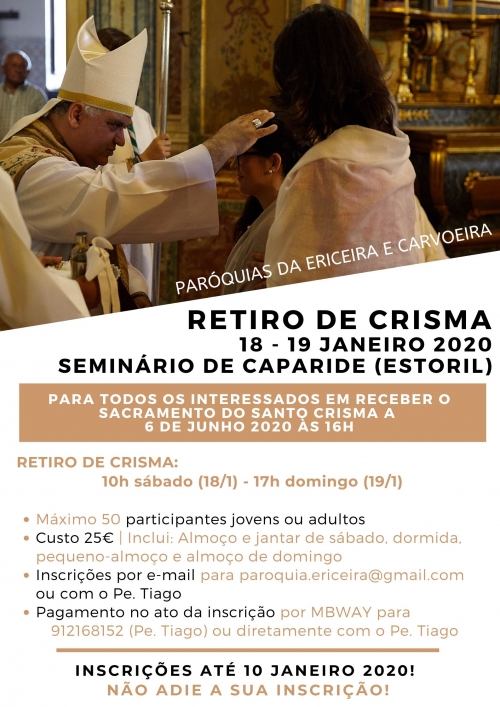 Inscrições abertas até 10 de janeiro para o Retiro de preparação para o Crisma! Divulguem com quem possa estar interessado!