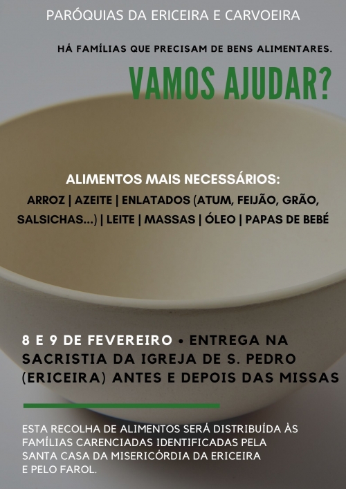 A Paróquia da Ericeira já se está a preparar para a recolha de alimentos a 8 e 9 de fevereiro. A lista de bens mais necessários...