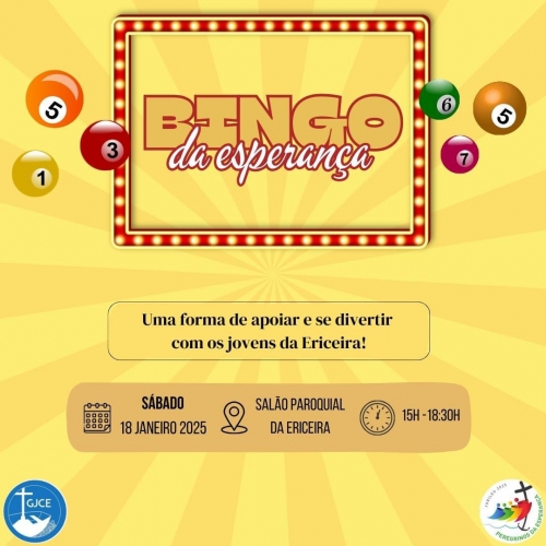 Hoje. sábado, há Bingo da Esperança a partir das 15h até às 18h30 no salão paroquial da Ericeira!