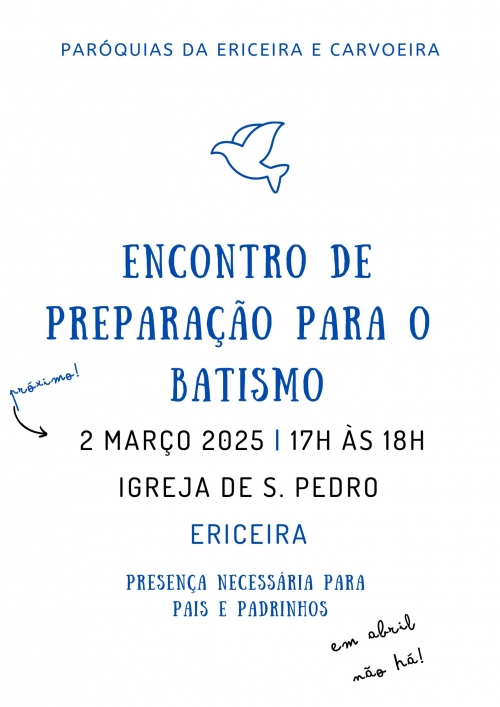 Pais e Padrinhos, o próximo Encontro de Preparação para o Batismo será a 2 de março de 2025 na igreja de S....