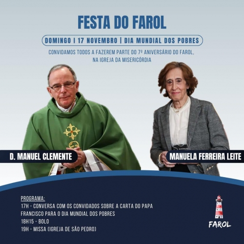 É com muita alegria que o Farol convida todos para a sua Festa de 7.° Aniversário, numa tarde com dois convidados especiais: o Cardeal D.
