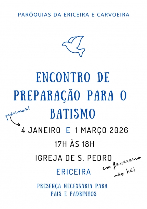 Os próximos Encontros de Preparação para o Batismo serão a 4 de janeiro e a 1 de março na igreja de S.