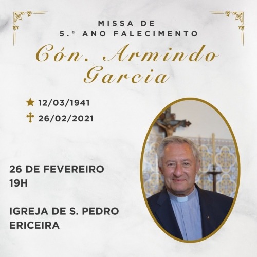 Esta quinta-feira, dia 26 de fevereiro, celebra-se a Missa do 5.º ano de falecimento do nosso Padre Armindo às 19h na igreja de S. Pedro, na Ericeira.