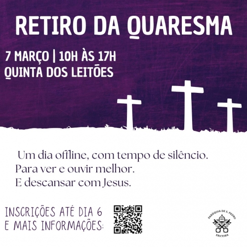 Venham fazer um dia de retiro no sábado, 7 março, das 10h às 17h, com tempo de silêncio, na Quinta dos Leitões. Mais...