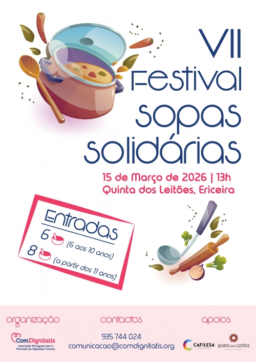 O VII Festival de Sopas Solidárias realiza-se a 15 de março, pelas 13h, na Quinta dos Leitões, na Ericeira. "Ao participar...