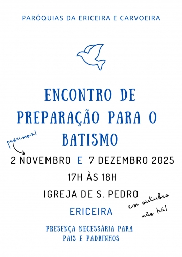 Os próximos Encontros de Preparação para o Batismo serão a 2 de novembro e a 7...