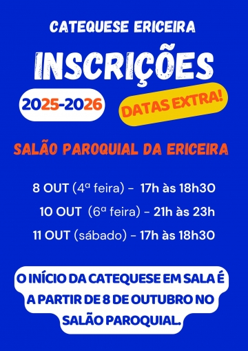 A partir desta 4ª feira começamos com a Catequese da Ericeira em sala! VIVA!