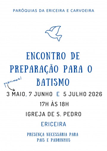 Os próximos Encontros de Preparação para o Batismo serão a 3 de maio, 7 de junho...